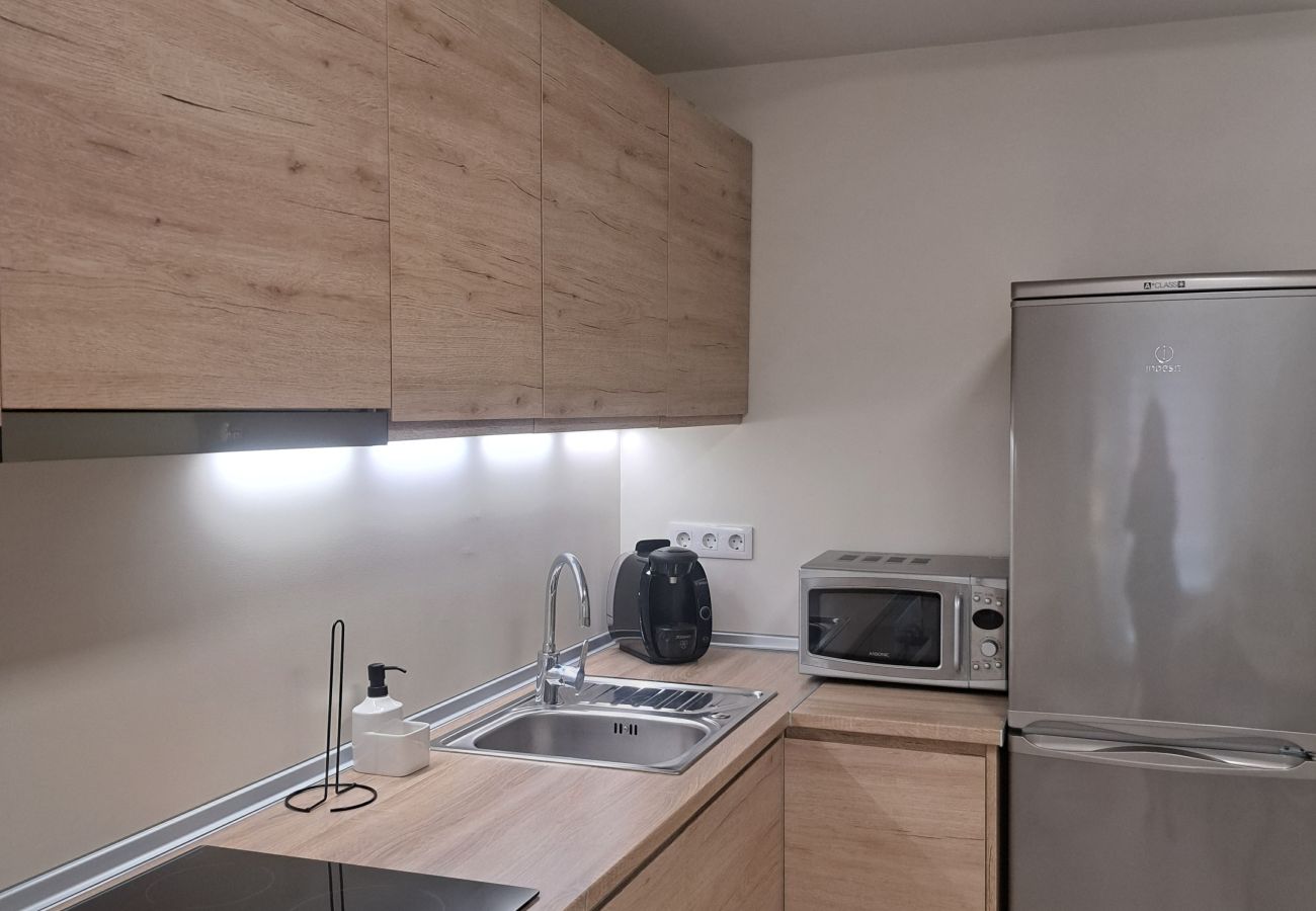 In the hotplate of glass ceramics open plan kitchen, refrigerator, microwave, oven, freezer, dishwasher, dishes/cutlery, kitchen utensils, coffee machine, toaster and kettle are provided.