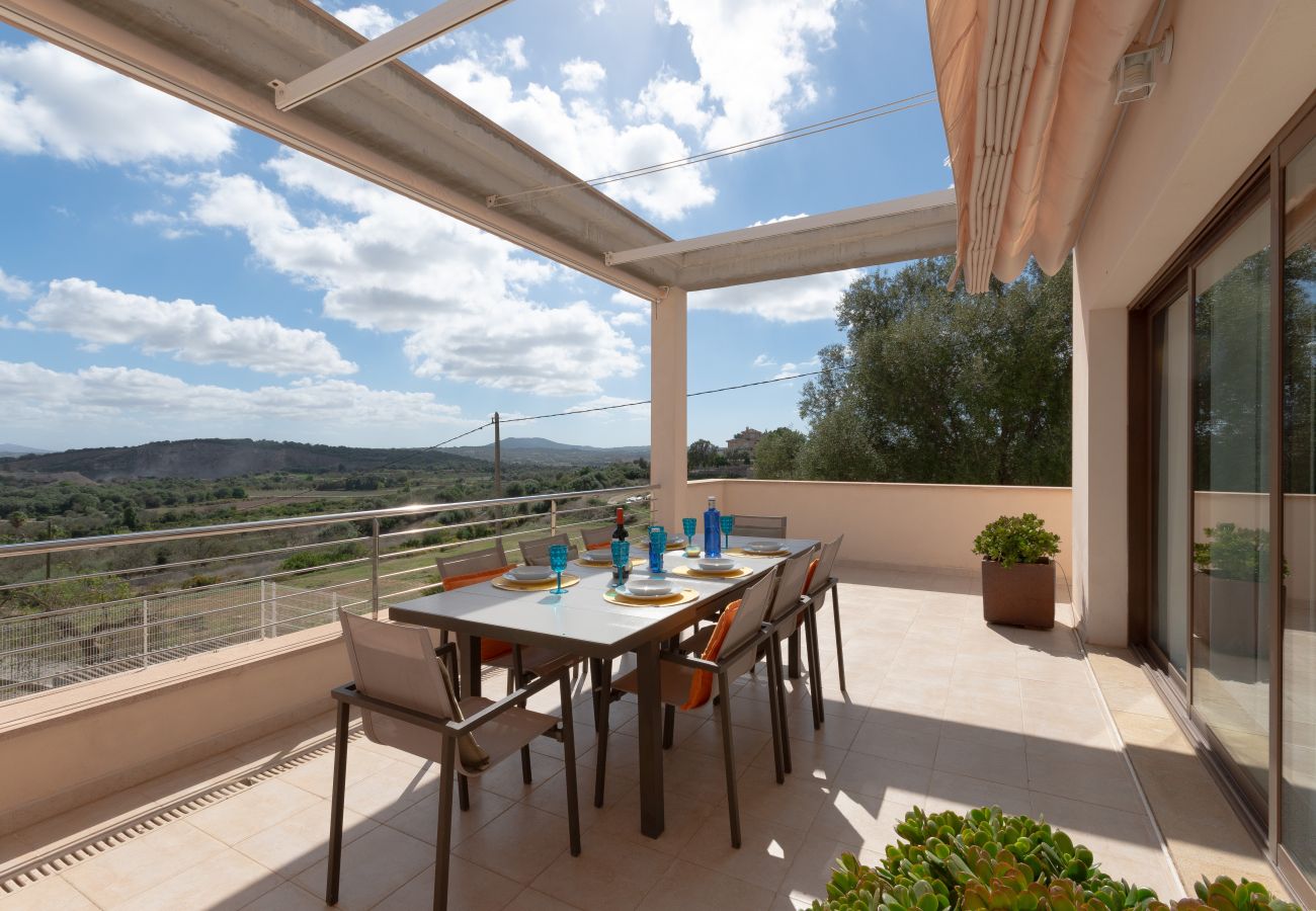 The villa in Maria de la salut has 4 bedrooms and has capacity for 8 people. The villa is tastefully-furnished, is modern, and is 255 m². It has views of the mountain and the swimming pool. The property is located 500 m from Carrer Jaume Bergas 6A bus station, 550 m from Maria de la Salut city, 700 m from Aprop supermarket, 7 km from Sineu train station, 21 km from Son Serra de Marina sand beach, 30 km from Golf Club Alcanada golf course, 42 km from Son Sant Joan airport. The house is situated in a family-friendly neighborhood in a residential complex.The accommodation is equipped with the following items: garden furniture, fenced garden, terrace, washing machine, barbecue, iron, internet (Wi-Fi), hair dryer, balcony, private swimming pool, garage the same building, TV, satellite tv (Languages: Spanish, English, German).In the hotplate of glass ceramics independent kitchen, refrigerator, microwave, oven, freezer, dishwasher, dishes/cutlery, kitchen utensils, coffee machine, toaster and kettle are provided.