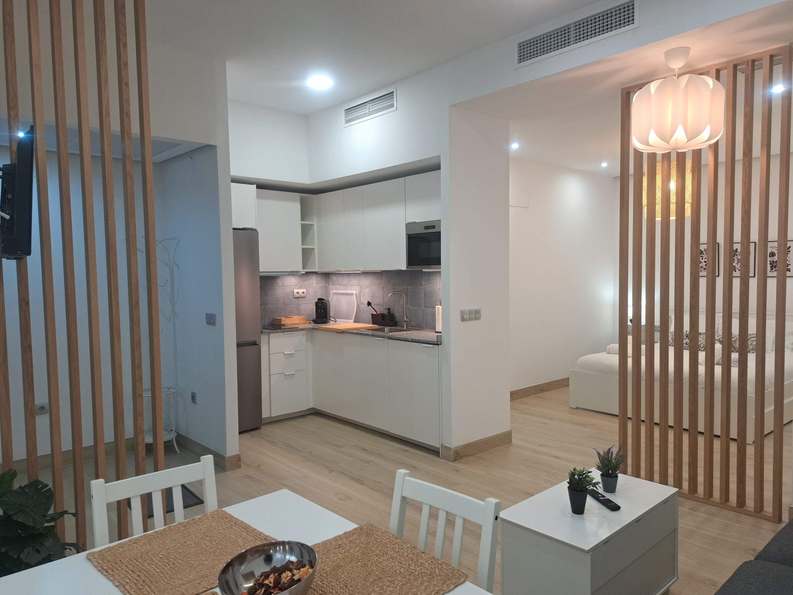 Appartement à Seville qui possède 1 chambre(s) et Capacité pour 4 personnes. Logement de 40 m² accueillant et moderne. Il est situé dans une zone résidentiel zone et au centre de la ville.Elle dispose de clôture, lave-linge, fer à repasser, accès internet (wifi), sèche-cheveux, chauffage pompe à chaleur, climatisation, TV.La cuisine américaine, à vitrocéramique, est équipée avec réfrigérateur, micro-ondes, congélateur, vaisselle/couverts, ustensiles/cuisine, cafetière, grille pain, bouilloire et presse-agrumes.
