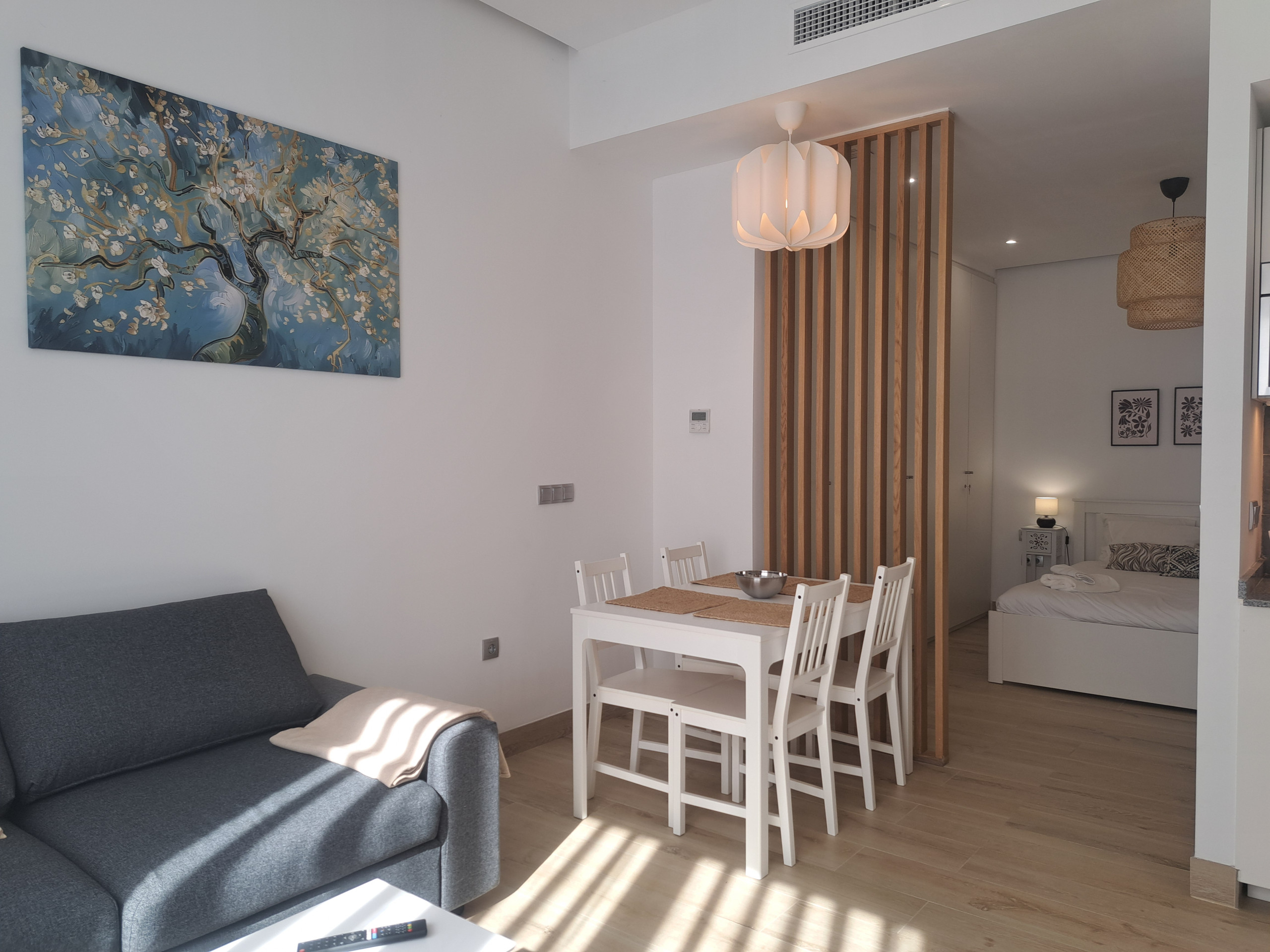 Appartement à Seville qui possède 1 chambre(s) et Capacité pour 4 personnes. Logement de 40 m² accueillant et moderne. Il est situé dans une zone résidentiel zone et au centre de la ville.Elle dispose de clôture, lave-linge, fer à repasser, accès internet (wifi), sèche-cheveux, chauffage pompe à chaleur, climatisation, TV.La cuisine américaine, à vitrocéramique, est équipée avec réfrigérateur, micro-ondes, congélateur, vaisselle/couverts, ustensiles/cuisine, cafetière, grille pain, bouilloire et presse-agrumes.