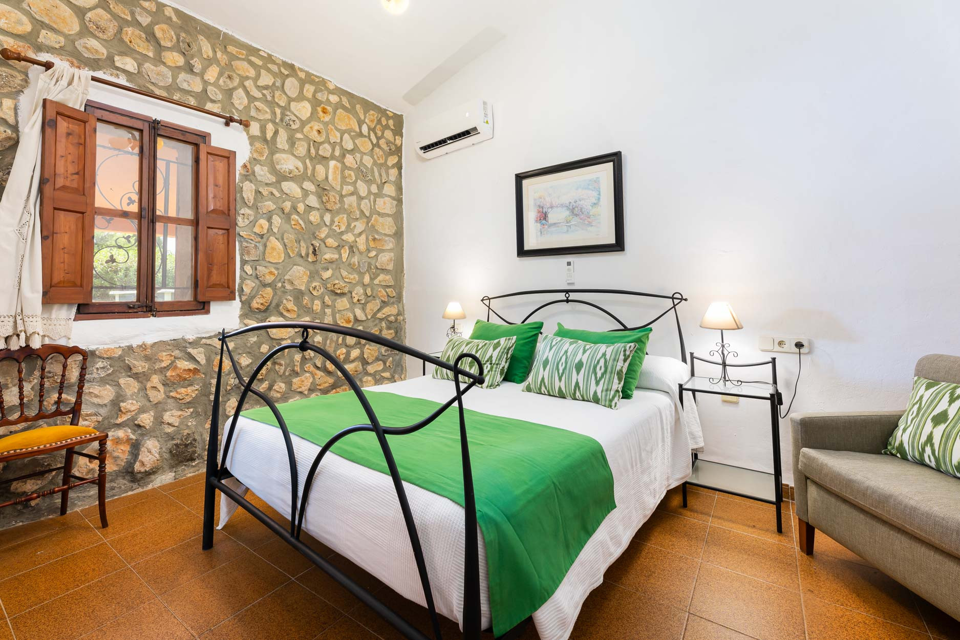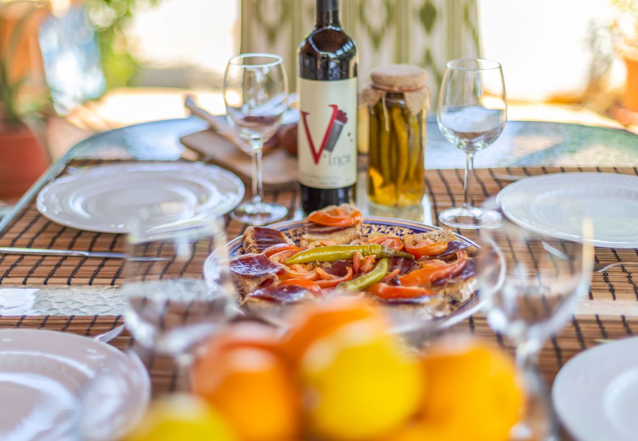 Domaine à Inca qui possède 3 chambre(s) et Capacité pour 5 personnes. Logement de 120 m² coquet et très lumineux, avec vue sur la montagne et le jardin. La location se trouve à 3 km de la gare routière "Hospital Inca", 4 km du supermarché "Lidl", 4 km de la ville "Inca", 4 km de la gare "Inca", 27 km de la plage de sable "Port Alcudia", 29 km de la plage de roche "Alcanada", 31 km du domaine de Golf "Alcanada Golf Club", 38 km de l'aéroport "Son Sant Joan" et il est situé dans une zone idéale pour familles zone et rural.Elle dispose de mobilier de jardin, clôture, terrasse, lave-linge, barbecue, cheminée, fer à repasser, accès internet (wifi), sèche-cheveux, chauffage pompe à chaleur, climatisation, parking extérieur même bâtiment, 1 Télévision, tv satellite (Langues: Espagnol, Anglais, Allemand), radio.La cuisine indépendante, à vitrocéramique, est équipée avec réfrigérateur, micro-ondes, four, congélateur, lave-vaisselle, vaisselle/couverts, ustensiles/cuisine, cafetière, grille pain et bouilloire.