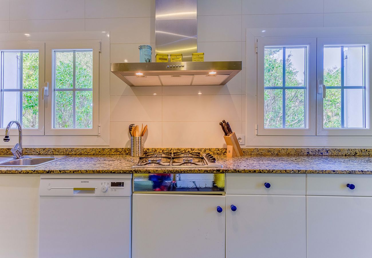Villa à Alcudia qui possède 4 chambre(s) et Capacité pour 8 personnes. Logement de 194 m² confortable et vaste, avec vue sur la montagne et le jardin. La location se trouve à 500 m de la gare routière "Port Cocodrilo", 700 m de la plage de roche "Caleta des Frares", 900 m de la plage de sable "Playa el Mal Pas", 3 km de la ville "Alcudia", 3 km du supermarché "Mercadona Alcudia", 7 km du domaine de Golf "Alcanada Golf Club", 17 km de la gare "Sa Pobla", 62 km de l'aéroport "Son Sant Joan" et il est situé dans une zone idéale pour familles zone et dans la zone urbaine.Elle dispose de jardin, mobilier de jardin, clôture, terrasse, lave-linge, barbecue, fer à repasser, accès internet (wifi), sèche-cheveux, chauffage pompe à chaleur, climatisation, piscine privée, parking extérieur même bâtiment, TV, tv satellite (Langues: Espagnol, Anglais, Allemand).La cuisine indépendante, à vitrocéramique, est équipée avec réfrigérateur, micro-ondes, four, congélateur, lave-vaisselle, vaisselle/couverts, ustensiles/cuisine, cafetière, grille pain et bouilloire.