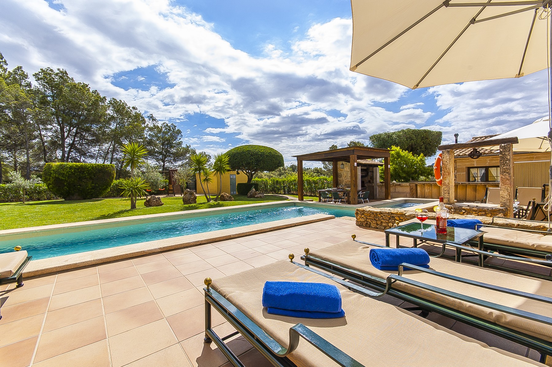 Ha giardino, giardino arredato, casa recintata, terrazza, lavatrice, asciugatrice, barbecue, ferro da stiro, accesso internet (wifi), asciugacapelli, riscaldamento pompa di calore, aria condizionata, piscina privata, parcheggio all'aperto in in struttura, Televisione, tv satellitare (Lingue: Spagnolo, Inglese, Tedesco), radio, Dvd.