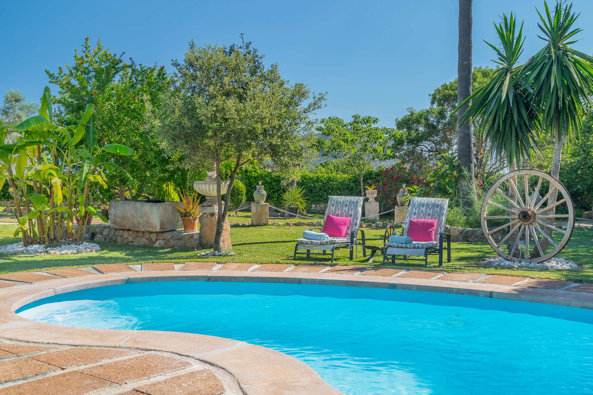 La fattoria a Inca ha 3 camera(e) da letto e capacità per 6 persone. Alloggio di 150 m² accogliente e totalmente attrezzata, con vista alla montagna e al giardino. Si trova a 3 km dalla stazione degli autobus "Hospital Inca", 3 km dal supermercato "Mercadona Inca", 4 km della città "Inca", 4 km dalla stazione dei treni "Inca", 23 km dal campo di Golf "Golf Club Pollensa", 27 km dalla spiaggia di sabbia "Port Alcudia", 30 km dalla spiaggia rocciosa "Alcanada", 38 km dall'aeroporto "Son Sant Joan" e si trova in una zona ideale per famiglie zone e rurale.Ha giardino, giardino arredato, casa recintata, terrazza, lavatrice, barbecue, ferro da stiro, accesso internet (wifi), asciugacapelli, balconi, riscaldamento pompa di calore, aria condizionata, piscina privata, parcheggio all'aperto in in struttura, Televisione, tv satellitare (Lingue: Spagnolo, Inglese, Tedesco), radio.La cucina americana, a vetroceramica, è attrezzata con frigorifero, microonde, forno, congelatore, lavastoviglie, stoviglie/posate, utensili da cucina, caffettiera, tostapane e bollitore.