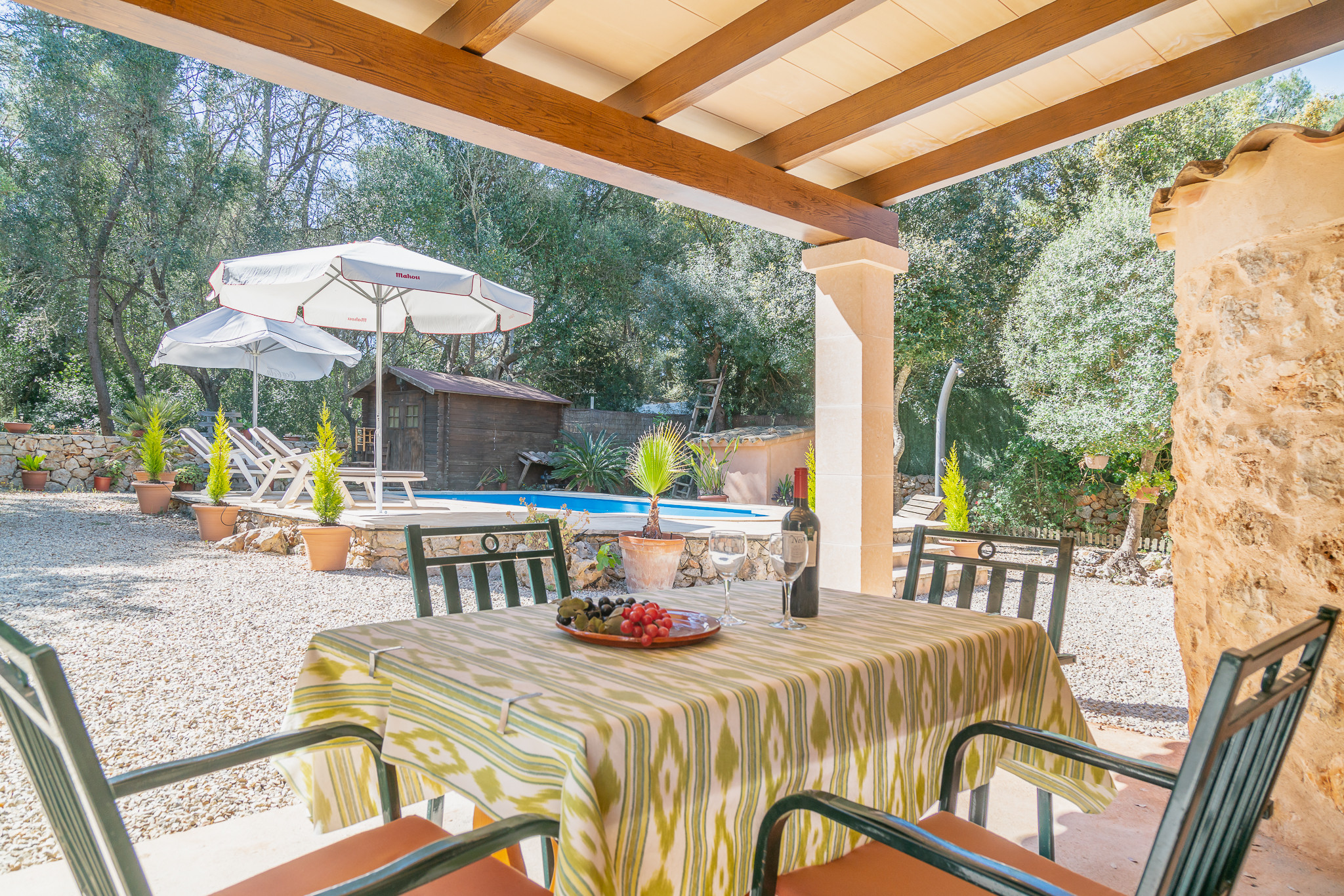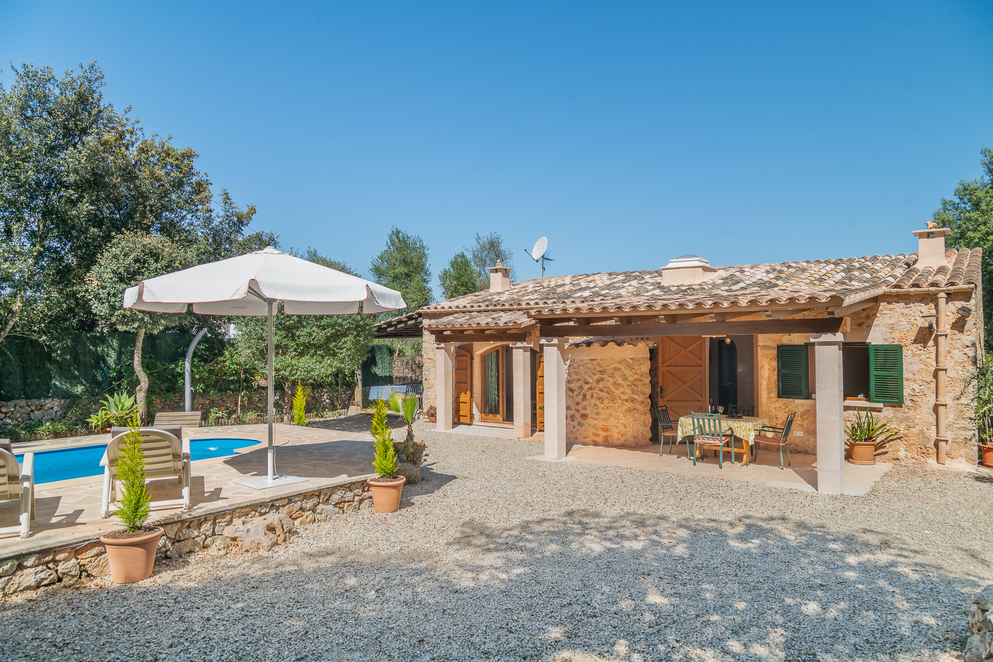 Ha giardino, giardino arredato, casa recintata, terrazza, barbecue, ferro da stiro, accesso internet (wifi), asciugacapelli, aria condizionata, piscina privata, parcheggio all'aperto in in struttura, 1 ventilatore, 1 Televisore, tv satellitare (Lingue: Spagnolo, Inglese, Tedesco), radio.