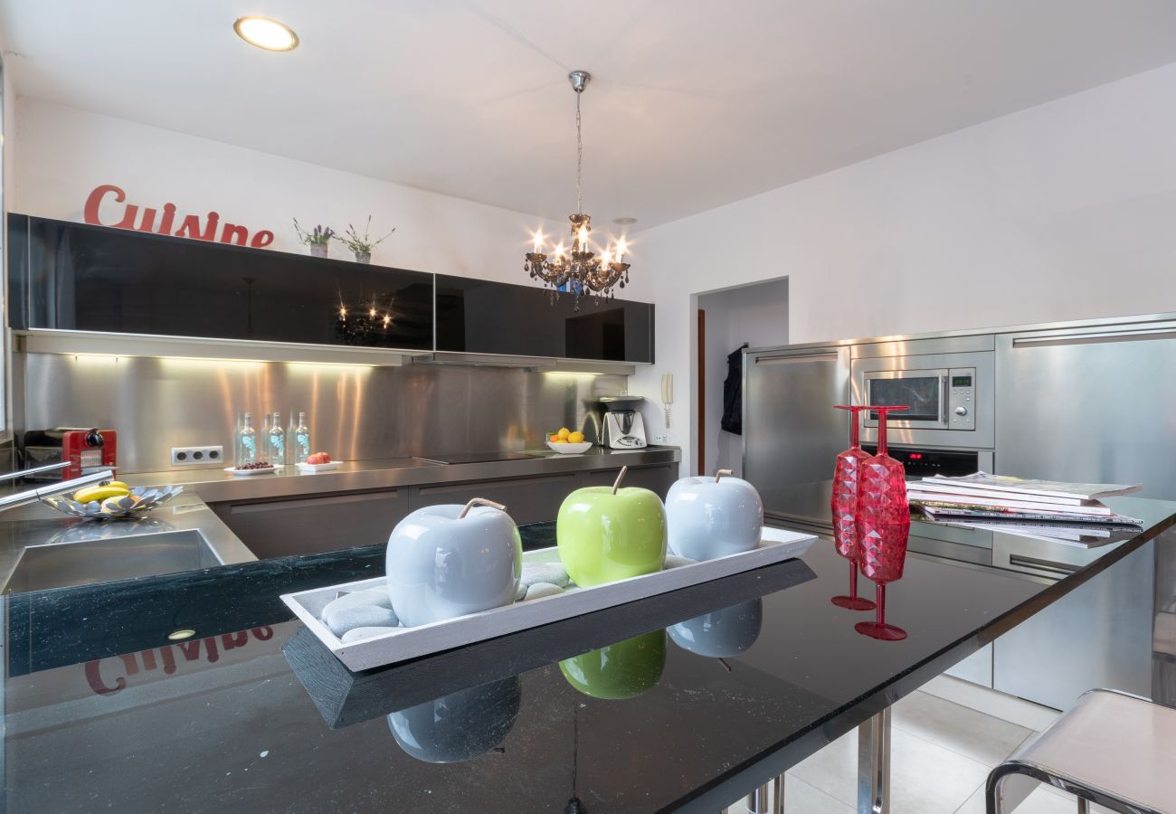 A kitchenette, de vitrocerâmica, está equipada com frigorífico, microondas, forno, congelador, máquina de lavar louça, louça/talheres, utensílios/cozinha, máquina de café, torradeira, jarro eléctrico e máquina de sumos.